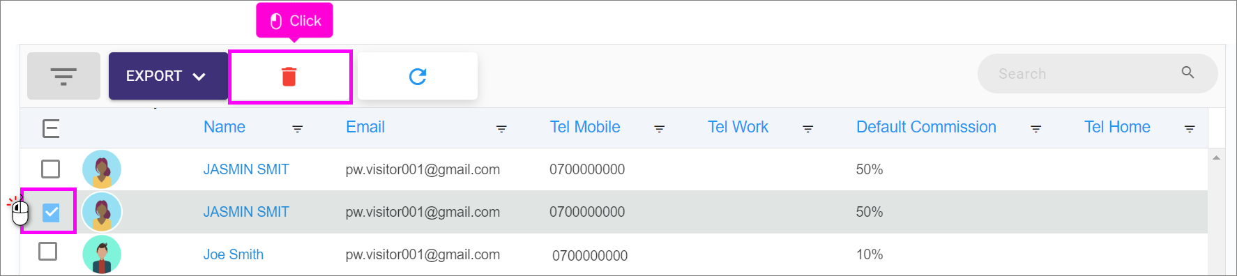 1. Select the agent to be deleted, by ticking the tick box.