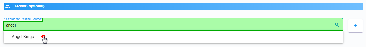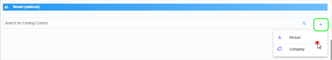 Link a Tenant/s (optional) to the file. User will either link an (A) Existing Contact or (B) Create a new contact: