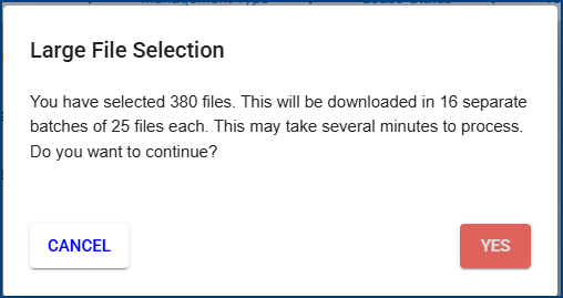 4. A notice will appear once the download is about to start. Depending on the date range and files selected, the pop up will let you know how many files it will download and in how many batches. Click on YES if you are ready to download.