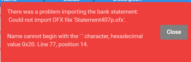 When importing an OFX or TXT bank statement, an error may appear. This error will usually indicate a specific issue, often caused by a character in the reference.