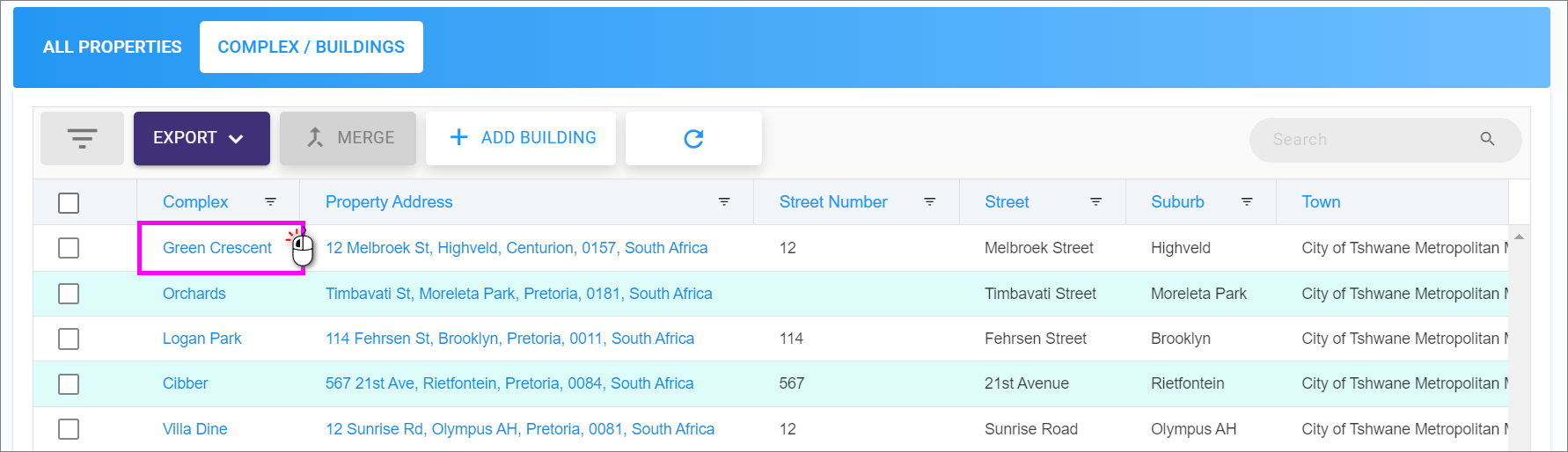 The complex/building is the area (like a sectional title, apartment building or shopping centre) where each individual unit is part of a whole complex/building. PropWorx does not consider the complex or building to be a property on its own, only the ...