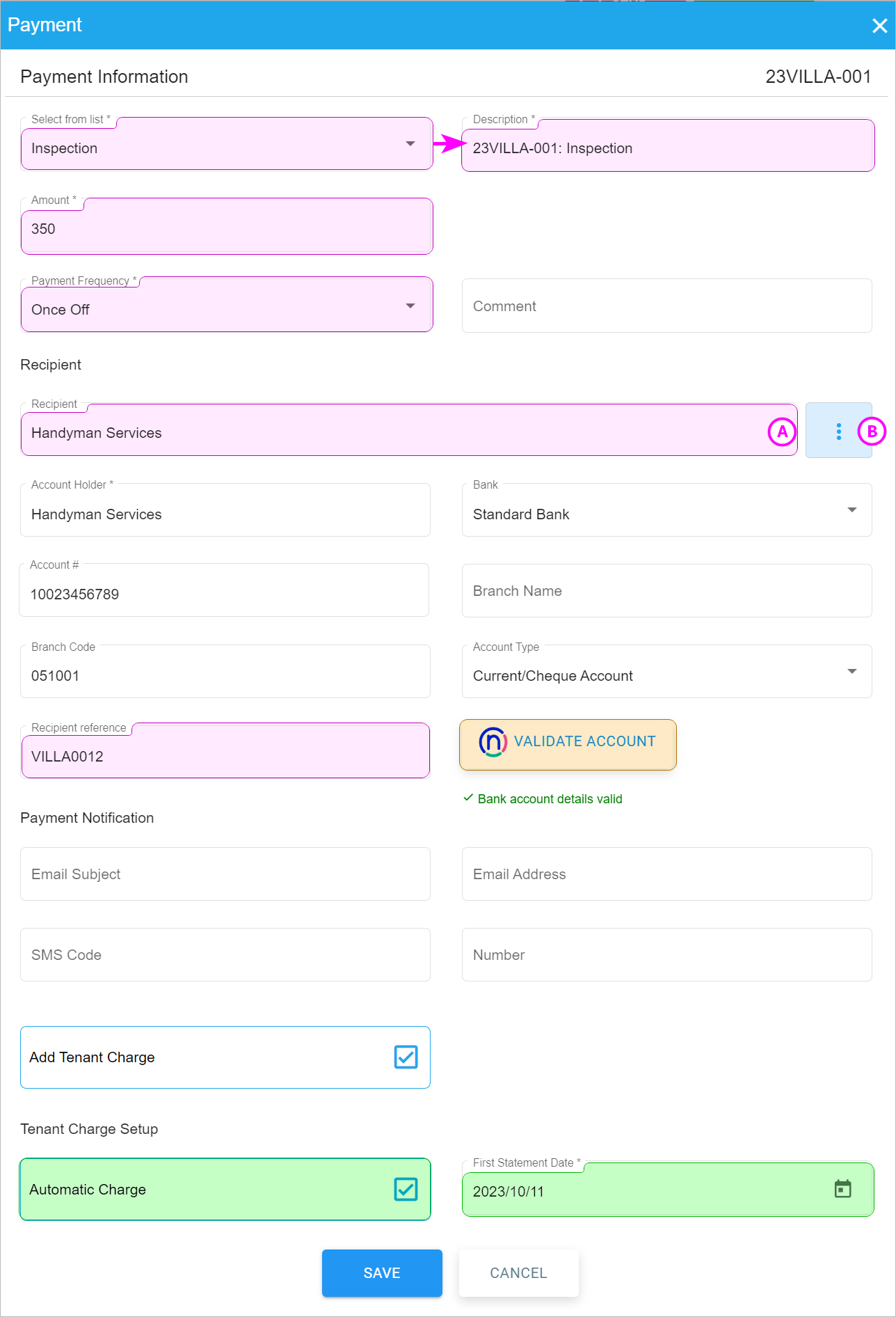 - Only for Tenant Transactions (optional): Configure tenant charge automation.