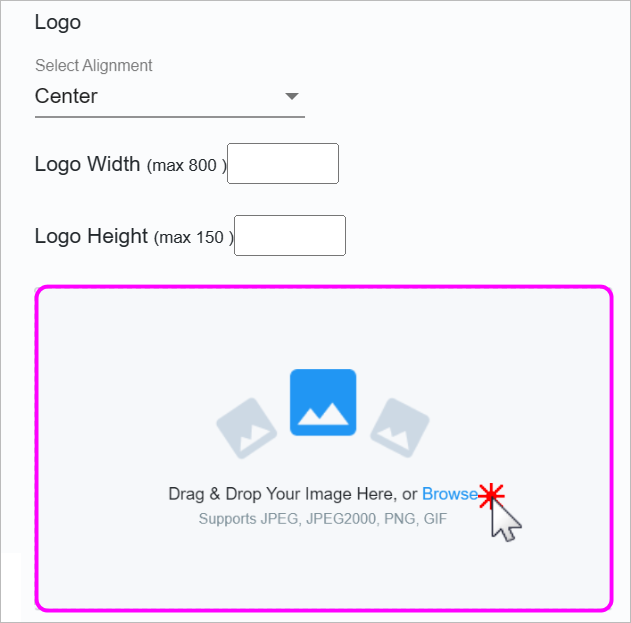 1. Click on the Browse button to import the logo image. Search device and select logo (ensure logo is in a image format)