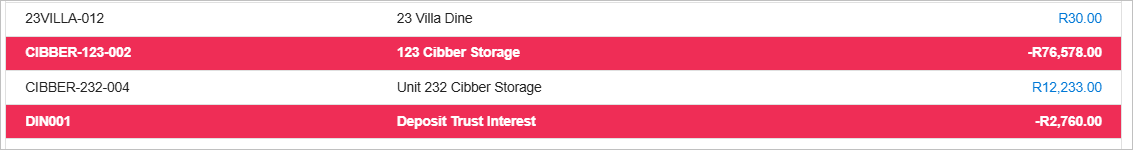 - Red Rows: ny rows highlighted in red indicate that the account is in deficit, meaning the trust or deposit account has a negative balance. Companies should treat these red-highlighted rows as a warning and take immediate action to resolve the deficit.