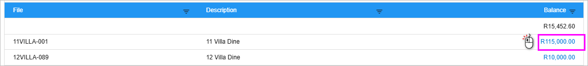 6. To view the ledger account, click on the balance for the ledger. Ledger account will open.